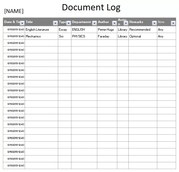 Document log templates are very important in every field, particularly in business, because these ensure all users’ interactions with documents are tracked, and they can be reported at any time. Usually, it provides a lot of ease in the upkeep of every business affair in an organized way and keeps a good record of all important documents. At one time, the document log could be maintained manually, and it was a very daunting task as well as a time-consuming job. However, today when everything is so widely available on the internet, these logs are also maintained by various software or templates. It arranges documents in such a way that everyone can easily find relevant documents as well as much faster than the manual search for documents.